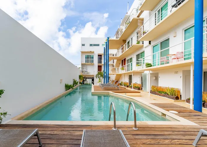 The spacious 140 m² Duplex W Rooftop Plunge Pool - Walk To Beach Playa del Carmen provides swift access to various city landmarks, such as the Xcaret Park, located only a 5-minute walk away. Guests can take a dip in an outdoor swimming pool to relax after a long day.